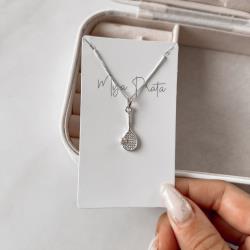 Colar pingente raquete e bola de tênis 20mm 45cm | Mya Prata