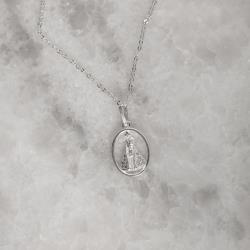 Colar pingente medalha Nsa. Sra. Aparecida cravejada 14mm corrente cadeadinho 45cm | Mya Prata