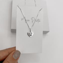 Colar pingente coração gato resina 11mm 45cm | Mya Prata