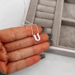 Colar letra U cravejada 10mm 45cm | Mya Prata