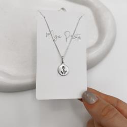 Colar pingente medalha ancora resina 45cm | Mya Prata