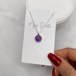 Colar pingente ametista 12mm corrente cadeado 45cm | Mya Prata