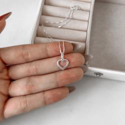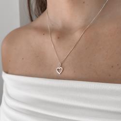 Colar pingente coração vazado 10mm 45cm | Mya Prata