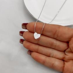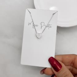 Colar coração todo cravejado 8mm 40cm | Mya Prata