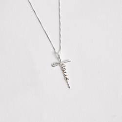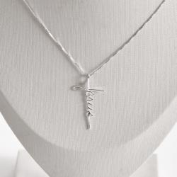 Colar cruz escrito Jesus 35mm 45cm | Mya Prata