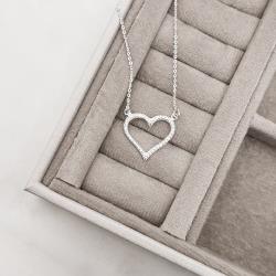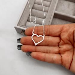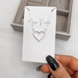 Colar coração vazado com bolinhas 19mm corrente cadeado 45cm com alongadora | Mya Prata
