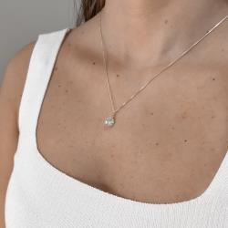 Colar pingente zircônia redonda cristal 8mm 45cm | Mya Prata