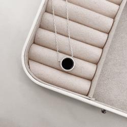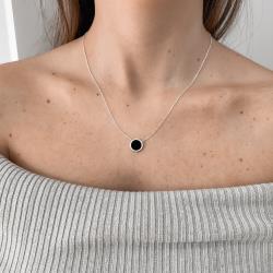 Colar círculo pedra ônix com cravejado 12mm corrente cadeado 45+5cm | Mya Prata