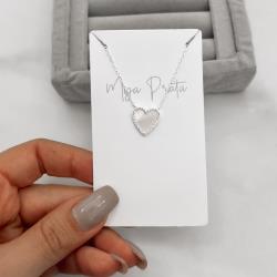 Colar coração madrepérola com cravejado 13mm corrente cadeado 45+5cm | Mya Prata
