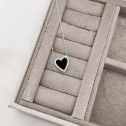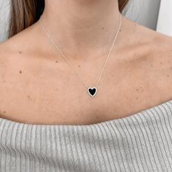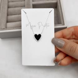 Colar coração pedra ônix com cravejado 13mm corrente cadeado 45+5cm | Mya Prata
