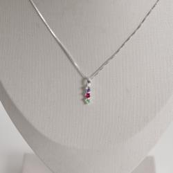 Colar pingente 3 zircônias coloridas 12mm 45cm | Mya Prata