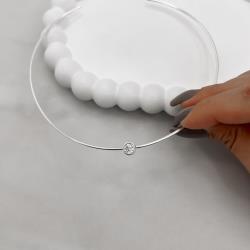 Descrição: Colar aro detalhe zircônia redonda aberto fabricado(a) em prata