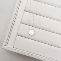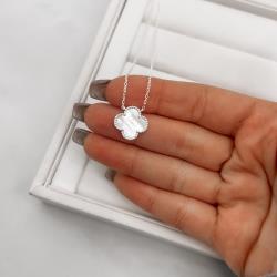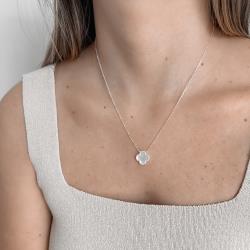 Colar trevo madrepérola com bolinhas 14mm corrente cadeado 45+5cm | Mya Prata