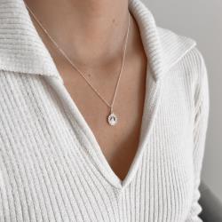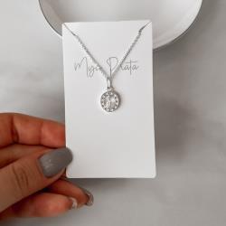 Colar pingente medalha Nsa. Sra. Aparecida cravejada 11mm corrente cadeadinho 45cm | Mya Prata