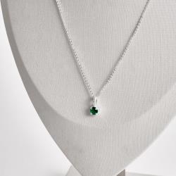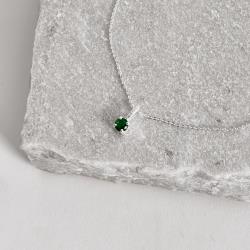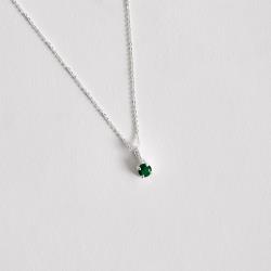 Colar pingente zircônia redonda esmeralda 5mm elo cravejado corrente cadeadinho 40cm | Mya Prata