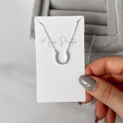 Colar ferradura toda cravejada 15mm corrente cadeado 40+5cm | Mya Prata