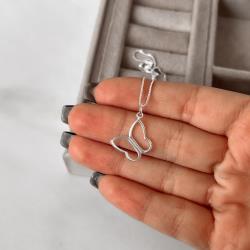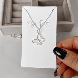 Colar pingente borboleta vazada de lado 15mm 45cm | Mya Prata