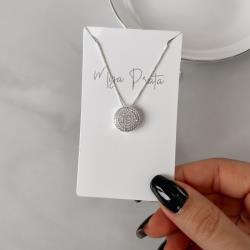 Colar botão cravejado 13mm 45cm | Mya Prata