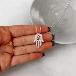 Colar mão cravejada trabalhada 23mm 45cm | Mya Prata