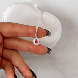 Colar zircônia oval cereja com cravejado 10mm corrente cadeadinho 45cm | Mya Prata