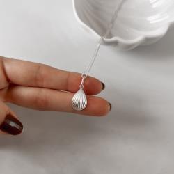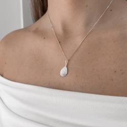 Colar pingente gota com vinco 16mm 45cm | Mya Prata