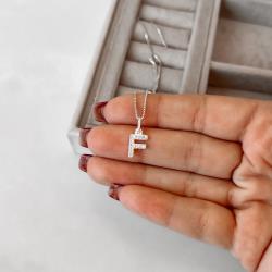 Colar pingente letra F cravejada 10mm 45cm | Mya Prata