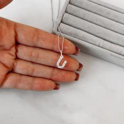 Colar pingente letra U cravejada 9mm 45cm | Mya Prata