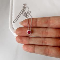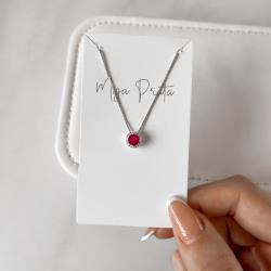 Colar zircônia redonda cereja com cravejado 7mm 40cm | Mya Prata