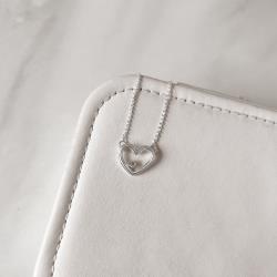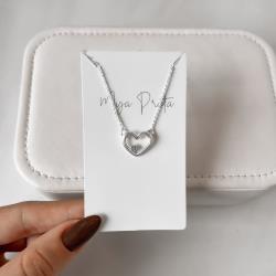 Colar coração vazado com zircônia 14mm corrente cadeado 40cm com alongadora | Mya Prata