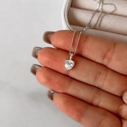 Colar zircônia coração cristal 7mm 40cm | Mya Prata