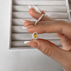 Colar zircônia oval amarela com cravejado 11mm corrente cadeadinho 45cm | Mya Prata