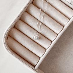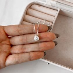 Colar zircônia coração de lado cristal com cravejado 9mm 45cm | Mya Prata