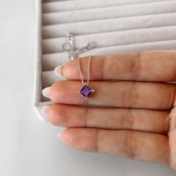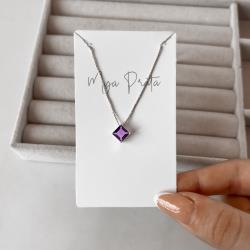 Colar zircônia losango ametista 10mm 45cm | Mya Prata
