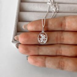 Colar pingente medalha oval São Jorge 15mm corrente cadeadinho 45cm | Mya Prata
