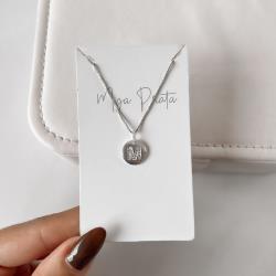 Colar pingente medalha letra M cravejada 15mm 45cm | Mya Prata