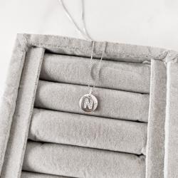 Colar pingente medalha letra N cravejada 15mm 45cm | Mya Prata
