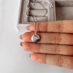 Colar pingente medalha letra P cravejada 15mm 45cm | Mya Prata