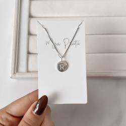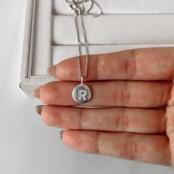 Colar pingente medalha letra R cravejada 15mm 45cm | Mya Prata