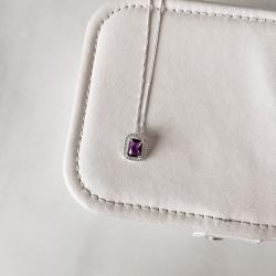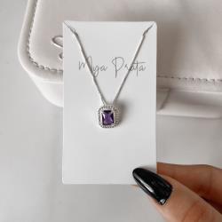 Colar zircônia retangular ametista com cravejado 13mm 45cm | Mya Prata