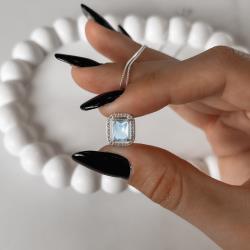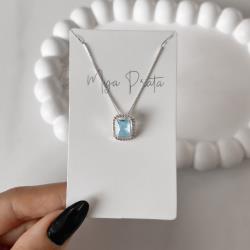 Colar zircônia retangular azul claro com cravejado 13mm 45cm | Mya Prata