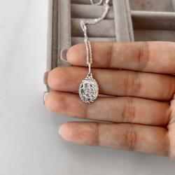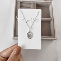 Colar pingente medalha oval Sagrada Família 18mm corrente cadeadinho 45cm | Mya Prata