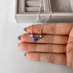 Colar entremeio estrelas cravejadas azul 25mm v15 40+5cm | Mya Prata