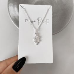 Colar pingente medalha oval Nsa. Sra. das Graças com zircônias 16mm corrente cadeadinho 45cm | Mya Prata