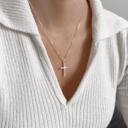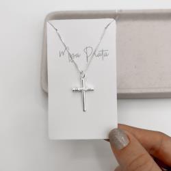 Colar pingente cruz escrito Amém 26mm 45cm | Mya Prata