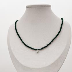 Colar cristal esmeralda 3mm pingente estrela com zircônia 5mm 40+5cm | Mya Prata