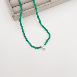 SALE Colar cristal acqua 3.5mm pingente zircônia coração cravejado 9mm 40+5cm