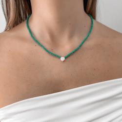 Colar cristal acqua 3.5mm pingente zircônia coração cravejado 9mm 40+5cm | Mya Prata