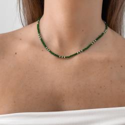 Colar cristal esmeralda 3mm com bolas 40+5cm | Mya Prata