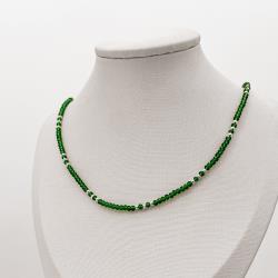 Colar cristal esmeralda 3mm com bolas 40+5cm