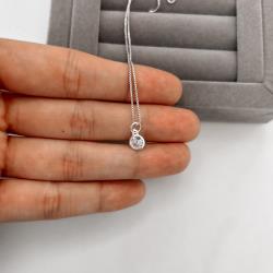 Colar pingente zircônia redonda embutida 6mm 40cm | Mya Prata